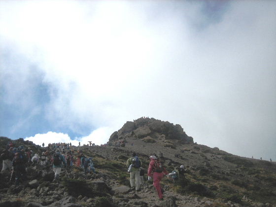 登山道は大渋滞で思うように歩けません。