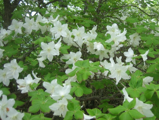 どうにか下りてきた所は五葉つつじのトンネルです。