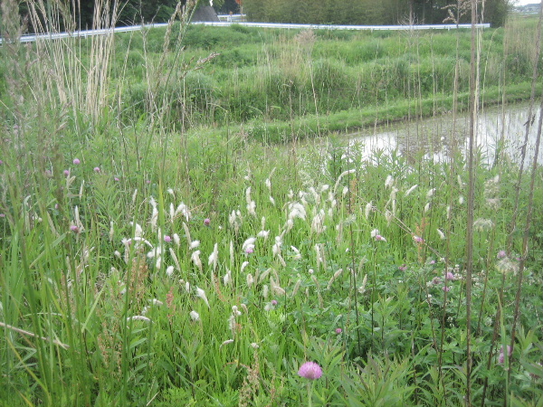 川の土手にひときわ目立つ赤紫の花