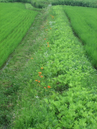 でも、ユリ科の花が田んぼの畦道では、ちょっと似合わないですよね