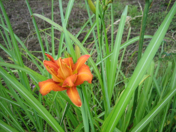 ヤブカンゾウが畦の草むらにオレンジ色を誇らしげに