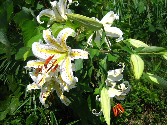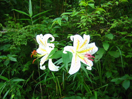 数日、留守をしている間に、散歩道のヤマユリが 今遅しと咲き出しました。