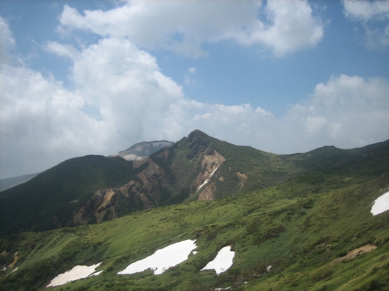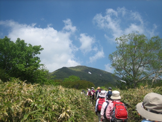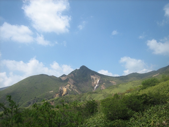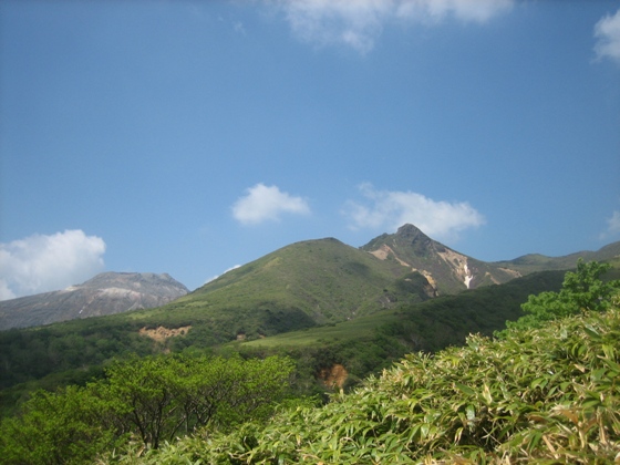 雄大な茶臼岳、朝日岳が左手にそびえています。