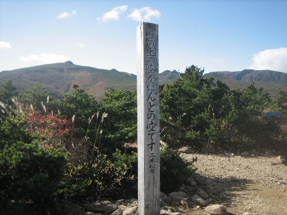 ”ここの上の空がほんとの空です”と書かれた木の碑が立っています。
