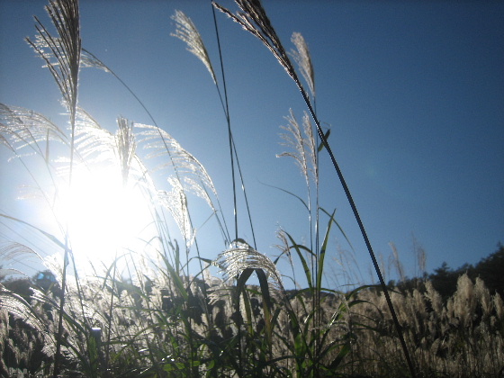 スキー場となるゲレンデにはススキが秋の陽に照らされていました。