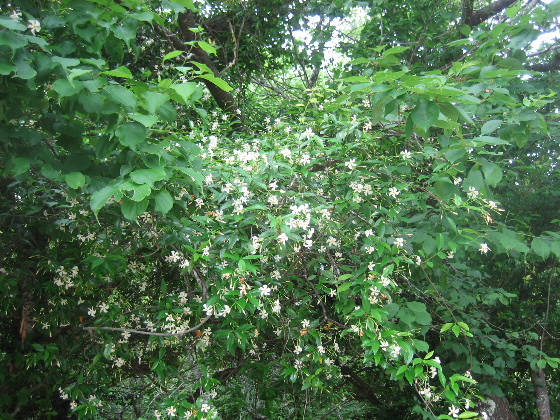 今、散歩道にはニンドウカズラ(スイカズラ)と